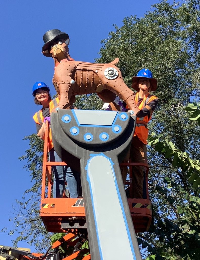 Sutton completed an internship in the Objects lab as part of her graduate training in the Buffalo State conservation program. During her time at MACC, she worked on a variety of projects to expand her experience with different materials. Pictured is Sutton consulting with a client and lighting specialist regarding treatment of an artist designed outdoor lighting fixture.
